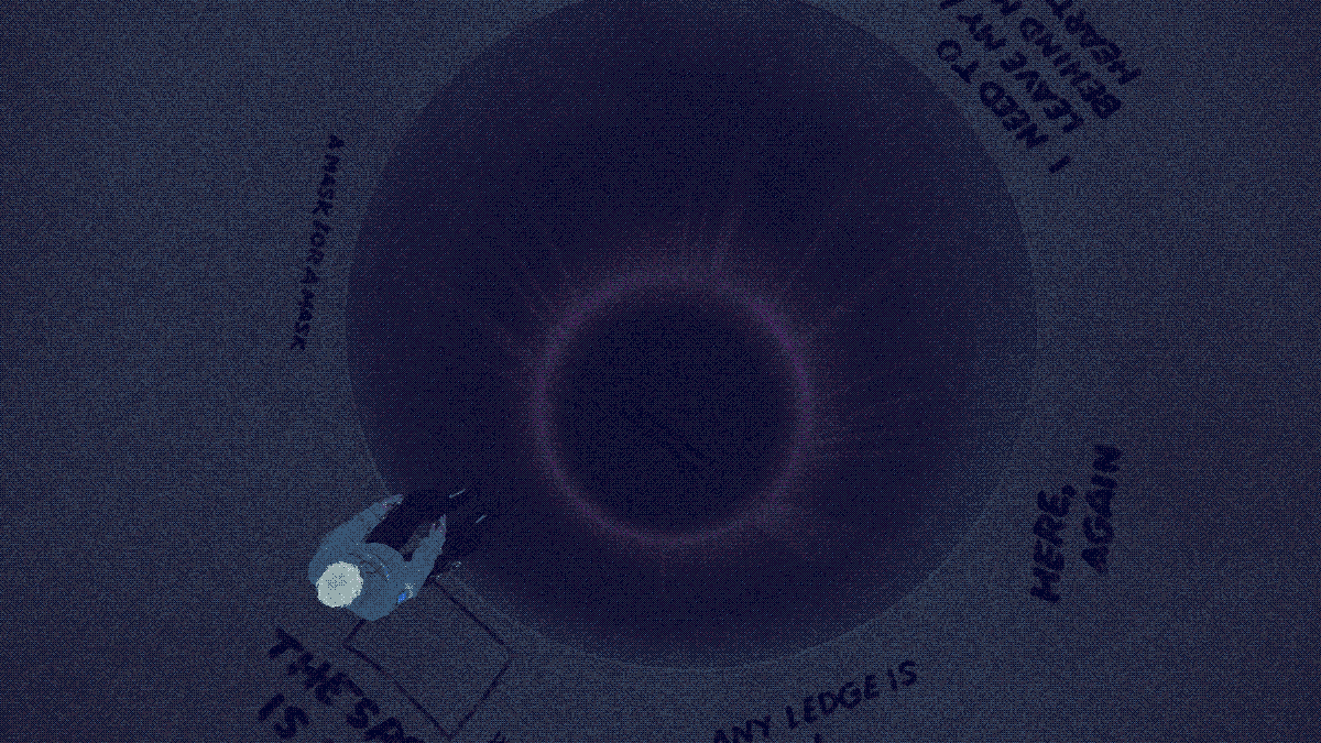 the fog that surrounds me isn't present just in the world but in my heart and in my head. i stand before a hole that seems to be grabbing me, goading me, telling me to take a seat before it and gaze upon the memories of a time in a place of an experience that tears the soul. the energy in this world feels familiar, like a memory. not pleasant. this world shocks you upon the very first second, places you in the shoes of a person who stands before a hole in their life and in their existence, and so, entering this world requires care and open-mindedness. i need to leave my head behind my heart. i let my heart guide the way.